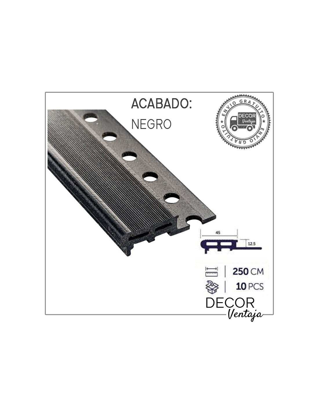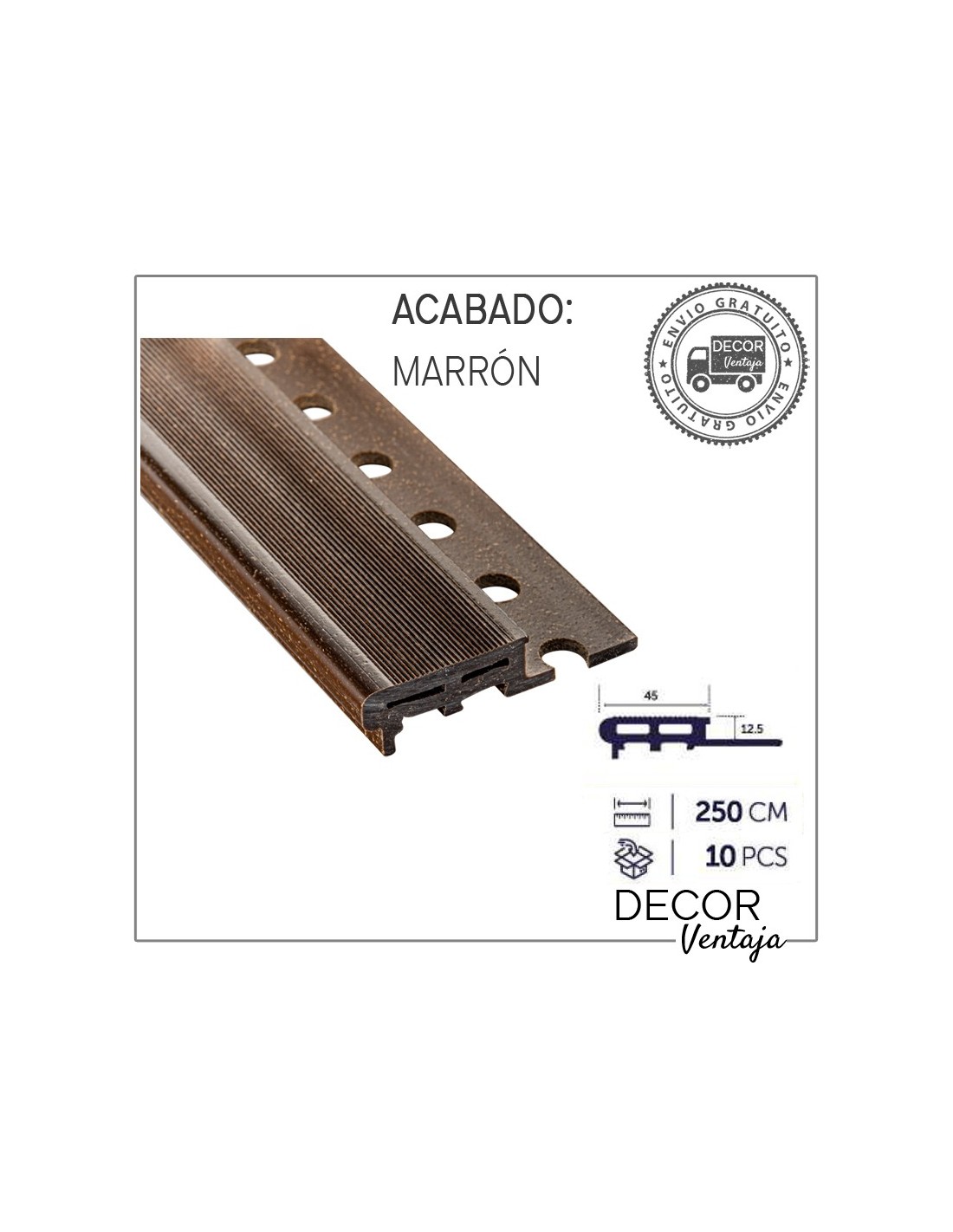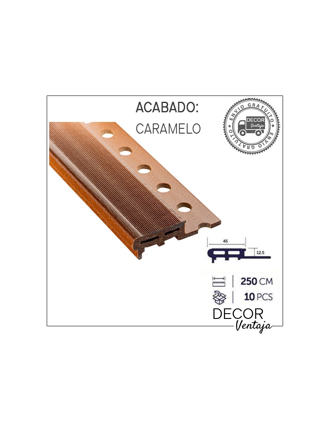 Caja 10 piezas de 2,5 metros lineales cada pieza.