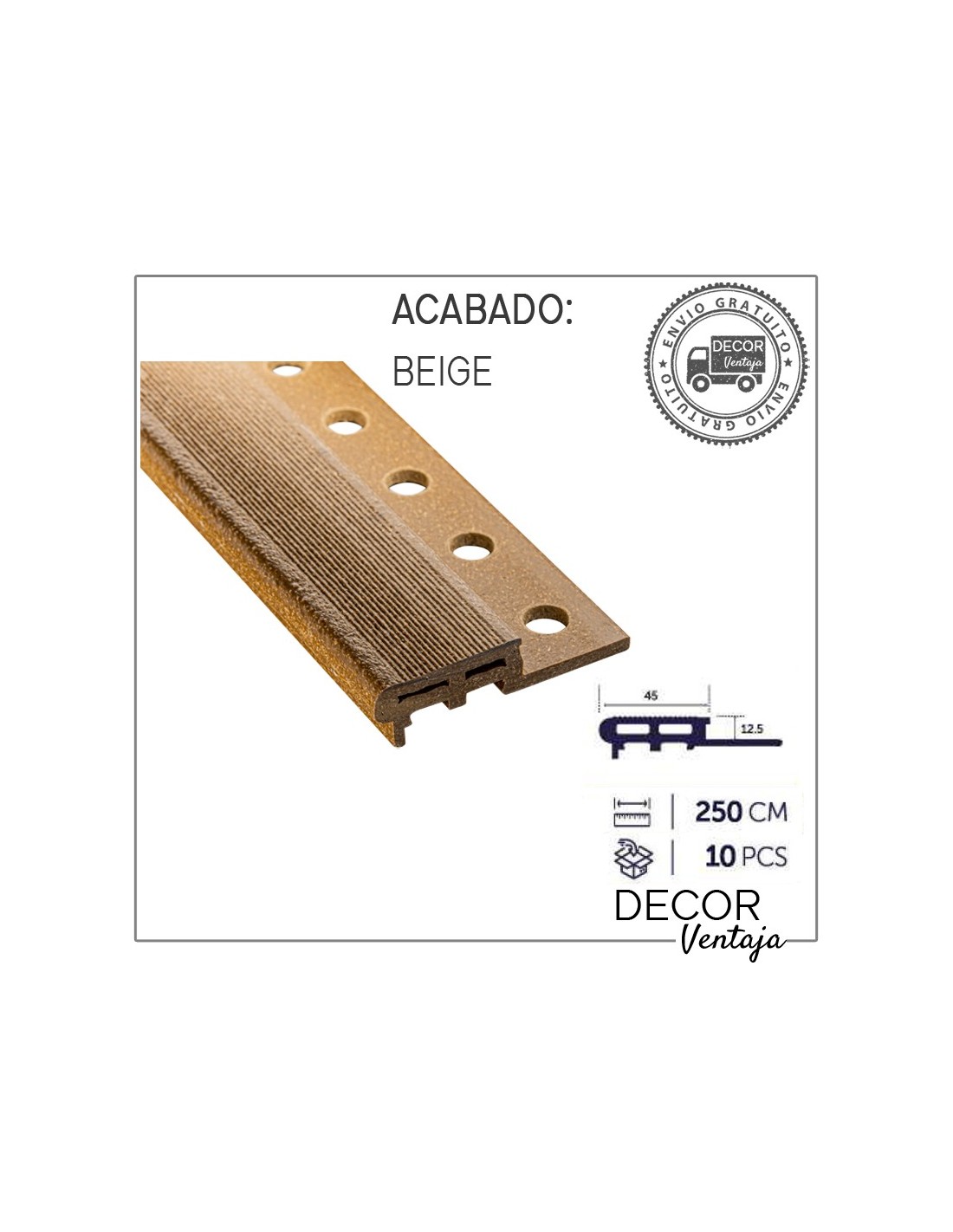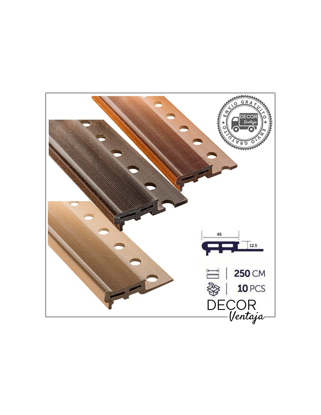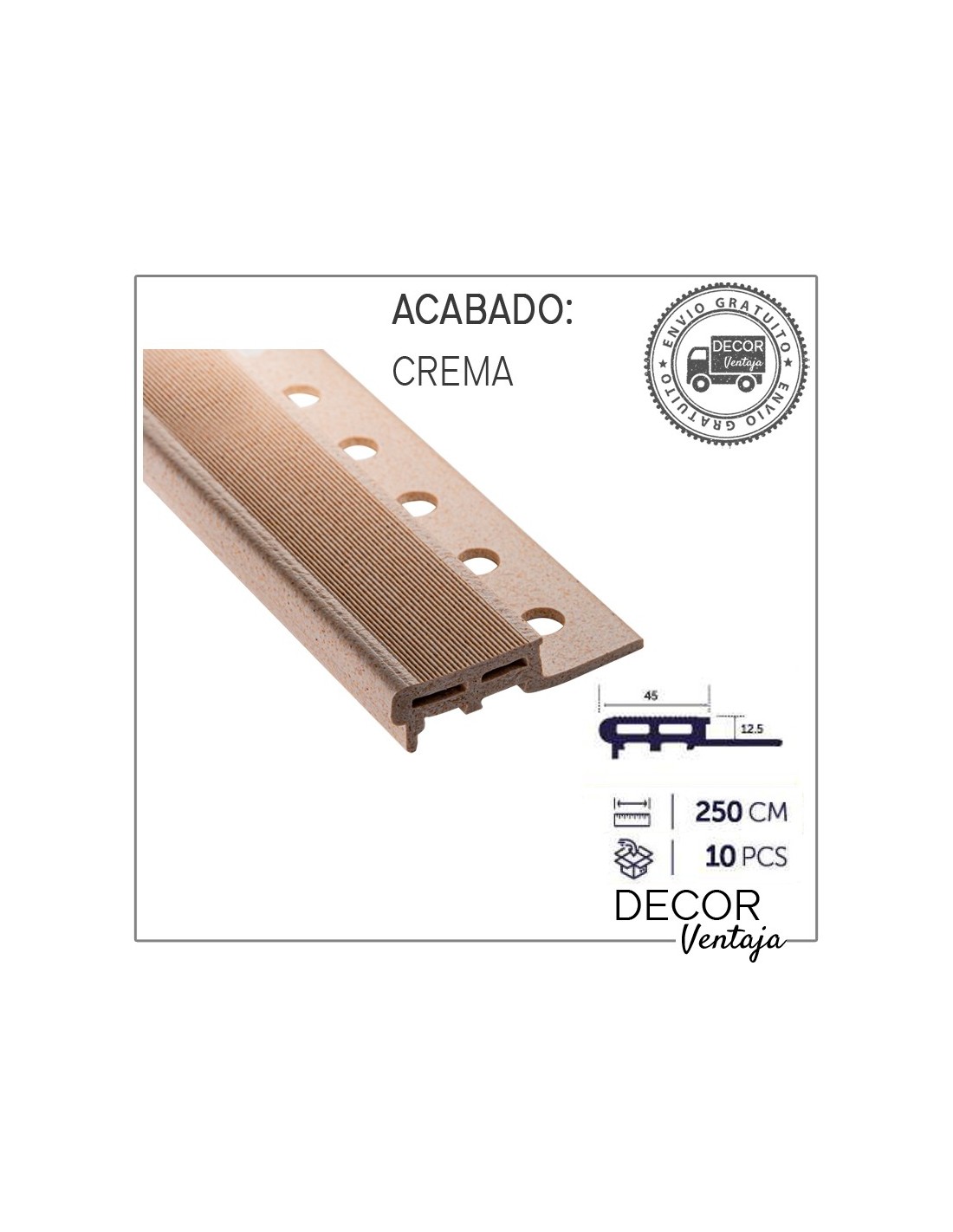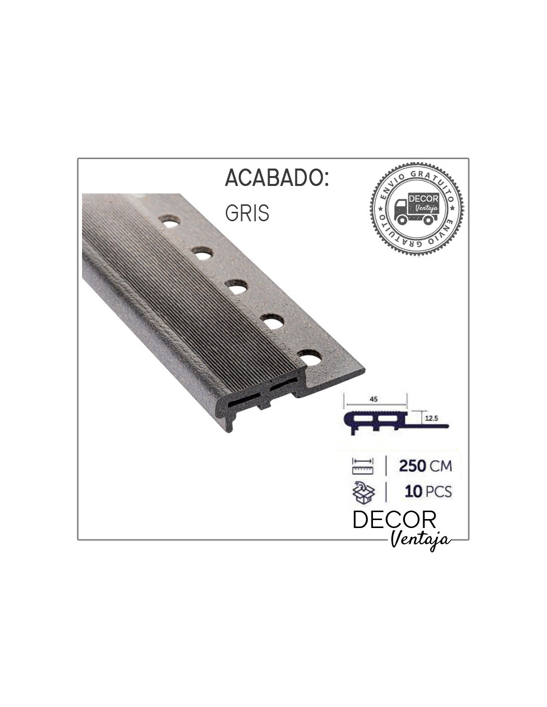 Caja 10 piezas de 2,5 metros lineales cada pieza.